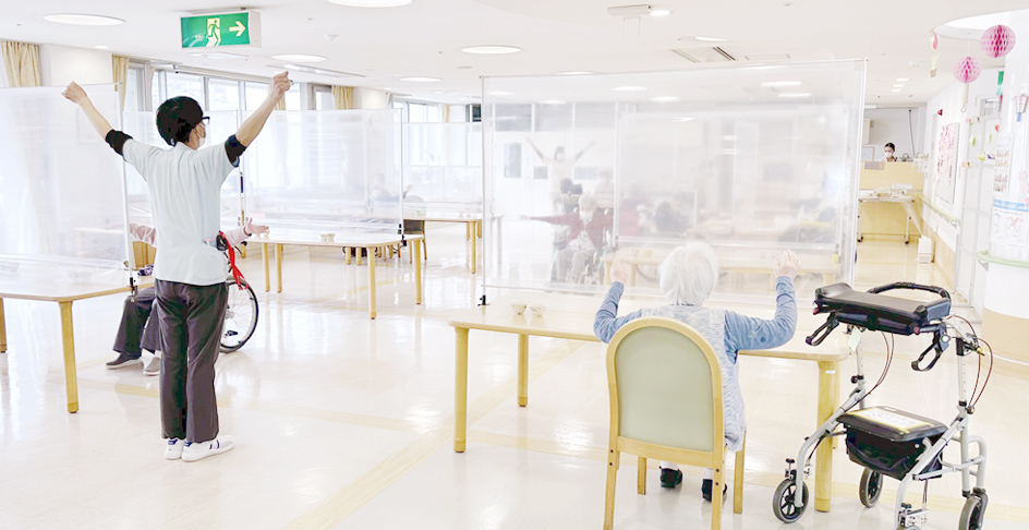 フロアで行われる集団リハビリに自由にご参加いただけます。 |